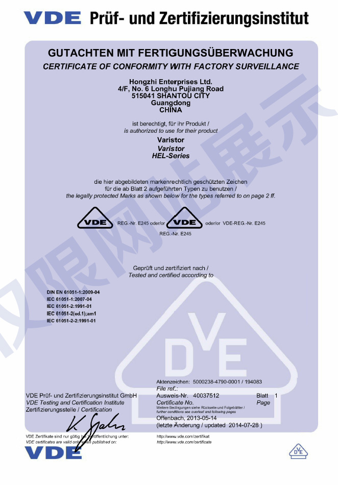 廣東鴻志電子科技有限公司成立于1993年,位于美麗的海濱城市汕頭,現(xiàn)已發(fā)展成為元器件制造集團企業(yè),生產(chǎn)壓敏電阻、NTC熱敏電阻、陶瓷電容和金屬化薄膜電容,通過了ISO9001質(zhì)量體系認證和ISO14001環(huán)境體系認證,以及IATF16949汽車產(chǎn)品質(zhì)量體系認證...